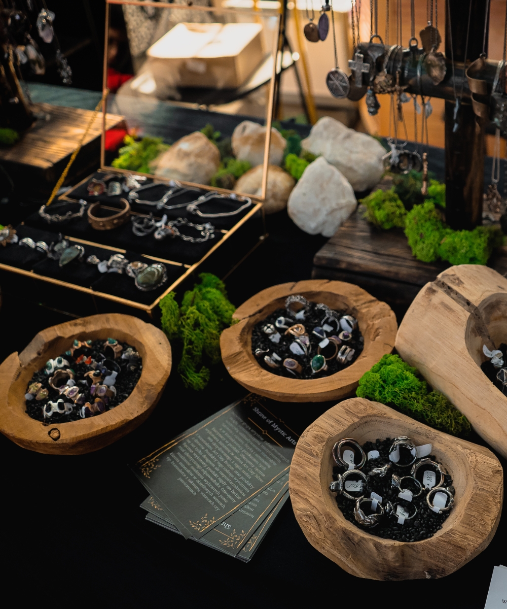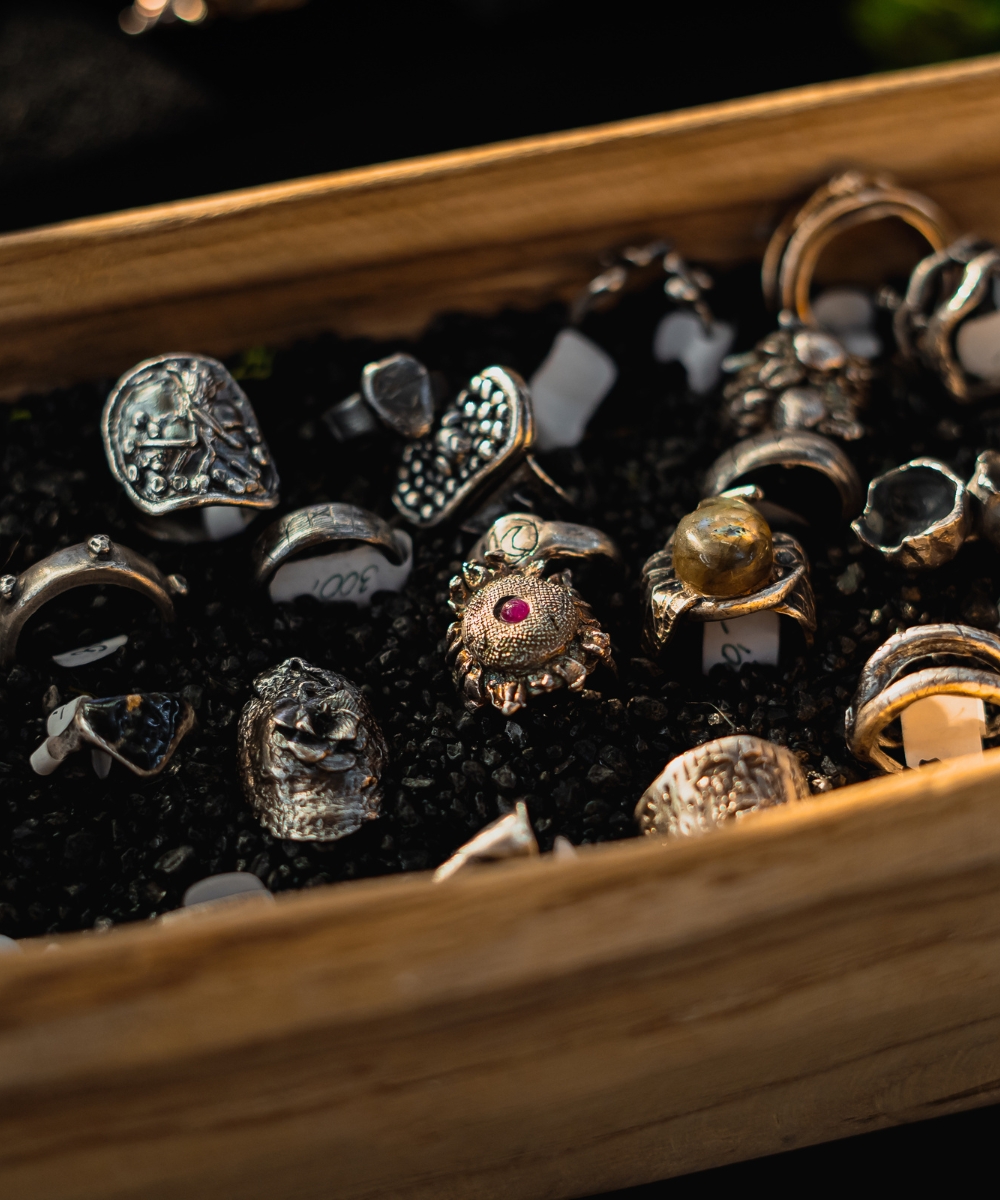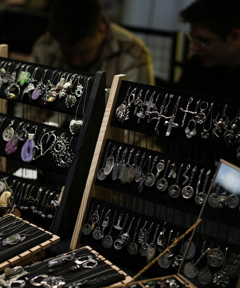 Biżuteria, którą tworzymy, najlepiej wybrzmiewa w bezpośrednim kontakcie. Możliwość mierzenia, dostrzeżenia detali z bliska, obejrzenia z każdej strony i rozmowy z autorami pozwalają w pełni poczuć jej charakter oraz historię, która stoi za każdym projektem. Dlatego chętnie spotykamy się z Wami na targach biżuterii, rękodzieła i wydarzeniach artystycznych w różnych miejscach w Polsce.